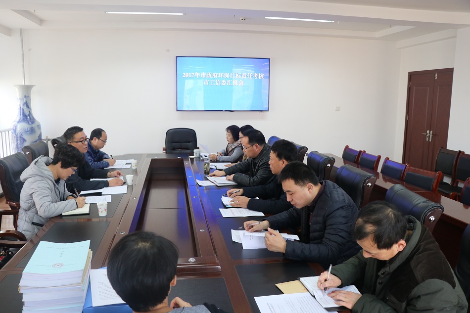 考核组通过听取汇报、查阅资料、座谈交流等方式,对市工信委2017年市政府环保目标任务指标完成情况、水污染防治目标任务指标完成情况、污染治理“十大工程”任务完成情况以及生态环境保护任务清单完成情况进行了详细了解。市工信委副主任吴来虎、相关业务科室科长参加会议。